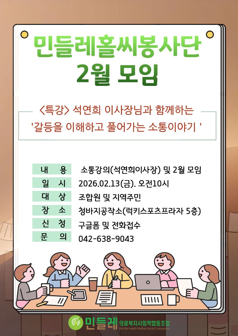봉사단 2월 정기모임이 함께 진행될 예정입니다.