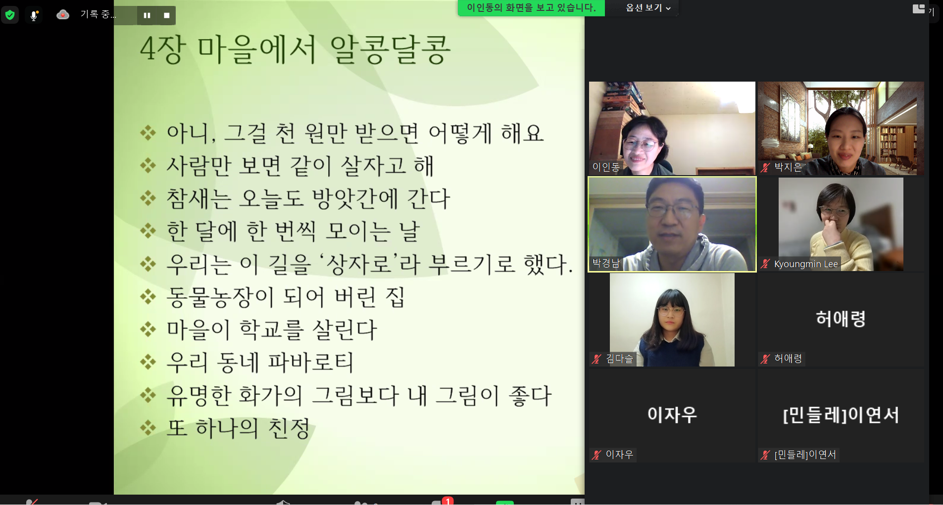 안성의료사협 의사선생님이시자 "마을의사로 살아가고 있습니다" 저자이신 권성실 선생님을 모시고 저자강연회, 독서모임을 진행함. 안성의료사협의 역사와 잔잔한 감동, 교훈 등을 전해들을 수 있었으며, 대전 민들레 의료사협의 발전 방향에 대해 고민해보는 시간이었음